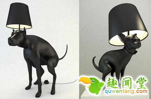 狗狗在拉屎,被英国一名艺术家whatshisname创意的设计为日常使用的产品:台灯。将开关设计为狗屎形状,每次使用都得亲手在狗屎上操作一把。也暗示那些经常遛狗的人,及时清理狗狗的大便。它的售价非常高,小狗的1000英镑,大狗的2500英镑。