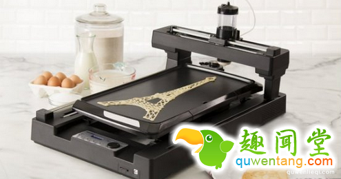 Pancake Bot是一款3D打印机,只需在原料箱中加入面糊、通过PC或是智能手机选择一个设计图,就可以打印出造型各异的煎饼,非???。这款产品目前已经成功上市,售价为300美元(约合人民币2003元)。
