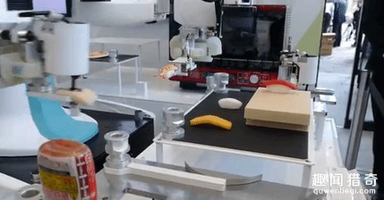 日本机器人公司Kawasaki开发了一款寿司机器人,可以在几十秒内做好一个寿司?;魅酥饕闪街Щ当圩槌桑赏瓿晌辗雇?、挤芥末等复杂的操作,做出美味的寿司。
