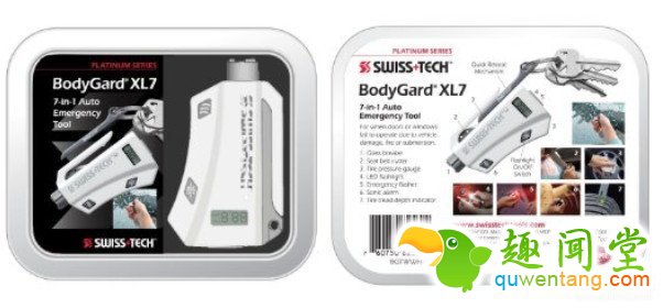 一讲到救生锤大家一定先联想到体型比较庞大的那一种,而且一般买了都是废置在车里。不过国外瑞士科技公司发明了一款比钥匙稍大的汽车救生锤,这款救生锤不仅仅能在紧急情况下砸玻璃,还有其它六种功能,是一款七合一的超级好物。