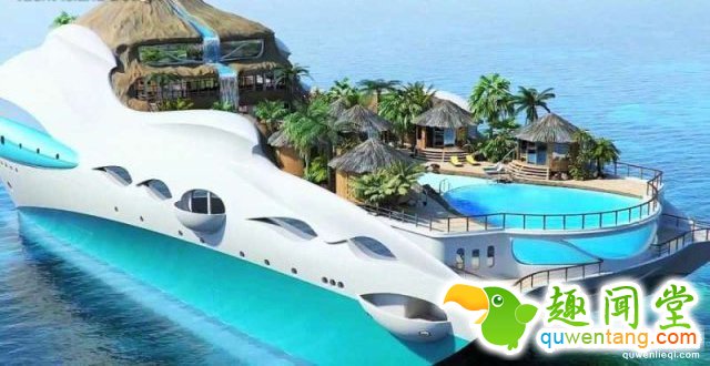 这是伦敦公司“Yacht Island Design”设计的项目,它就像一个真正的热带岛屿一样在海上漂浮,上面有瀑布、泳池,还有火山。