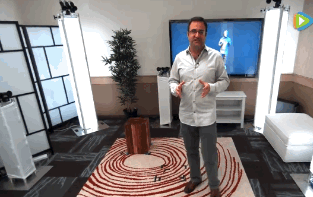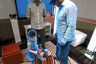 这项技术需要配合微软的增强现实眼镜 HoloLens 使用,戴上 HoloLens 后,你就可以看见他(虚拟的人)并且和他互动了,就像你们真的在一起一样。