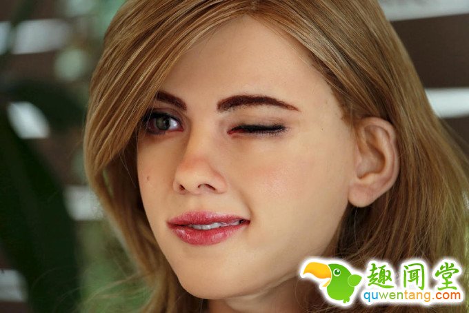 如果告诉Mark 1“你好可爱”,她在回答“是呀,没错”的同时,还会眨一下左眼。图为Mark 1在收到Ricky的指令后眨眼睛。