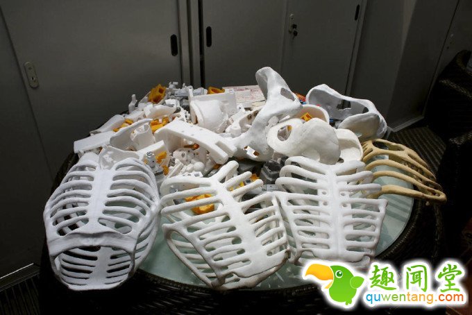Mark 1的骨架是Ricky用3D打印完成的,皮肤则用硅胶制成。她的四肢和面部肌肉都可以活动,摄像头则内置在眼睛里。图为Ricky站在Mark 1的身旁,手里拿着3D打印的“骨架”。