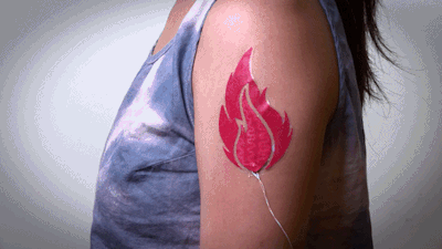 电子纹身附着一些传感设备,就可以实现不同的显示效果。而DuoSkin他们将温度改变颜色这项功能先实现了。配合一些巧妙的设计,你的电子纹身就“活”起来了。