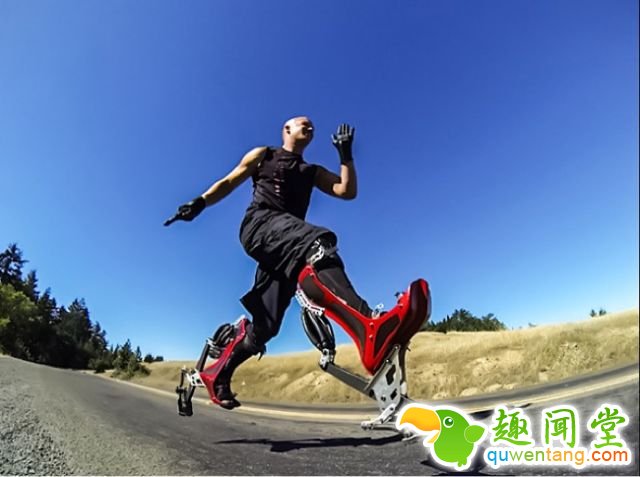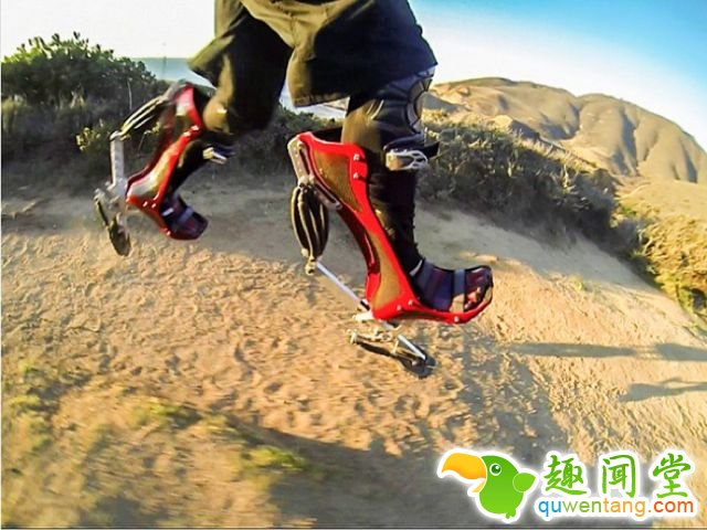 仿生靴子背后的弹簧给到额外的推动。