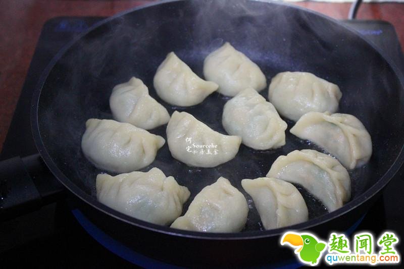 7.饺子可以360度无死角的煎至金灿灿,撒上香葱,即可出锅。