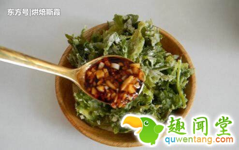 8、新鲜出炉的蒸芹菜叶就出国了,凉拌一下,再加上一点开胃菜,吃起来很爽。