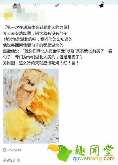 网友表示:烤红薯大叔专门为湖北食客准备了勺子