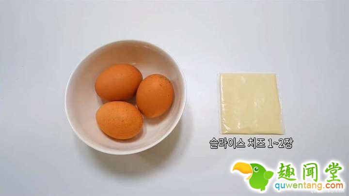 ▼1.准备好3颗蛋和1到2片起司,并将一片起司切成五条。