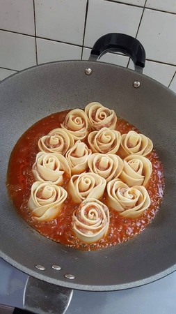 超赞!玫瑰花饺子你见过吗? 加上红色酱汁就更完美了