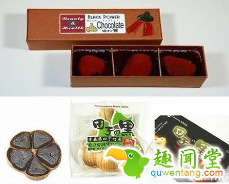 黑蒜巧克力,听起来就让人眉头一紧,天呐~巧克力这么美味的东西居然还能做成黑蒜味,它的发明者一定是在报复社会吧!!据悉是Takko Shoji发明了这种黑蒜巧克力,他说在这种发酵后的蒜上加些巧克力可以使人在一种食品上尝到酸甜苦辣多重味道,吃上几个月后,我们能感觉到它既可以增加能量又可以促进新陈代谢。