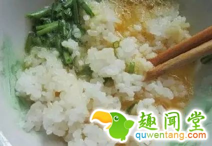 1、一碗剩米饭用2勺酱油、少许料酒和糖,再加少许油拌匀;