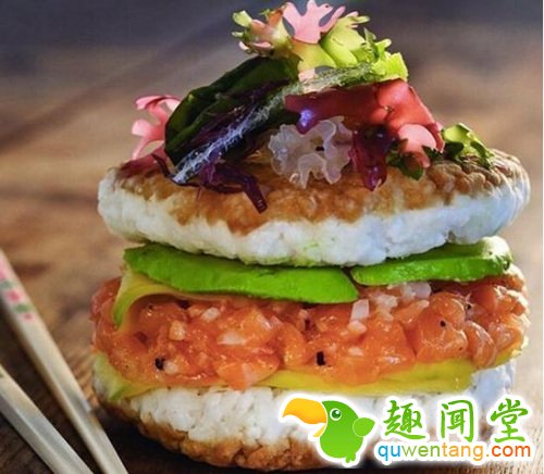 最近有一种跨界美食风靡日本,它就是集日本寿司和美国汉堡于一身的“寿司汉堡”。