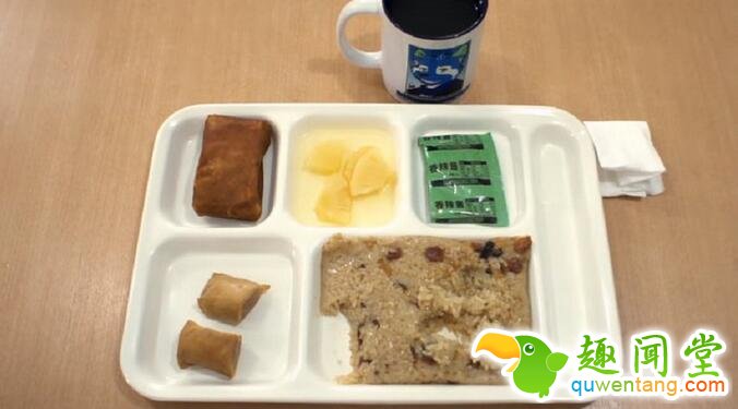 3. 中国:红豆饭、馅饼、蛋蓉猪肉卷、蛋蓉猪肉卷、杏桃泥和红茶,菜色感觉比美国逊色一点。