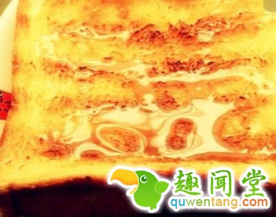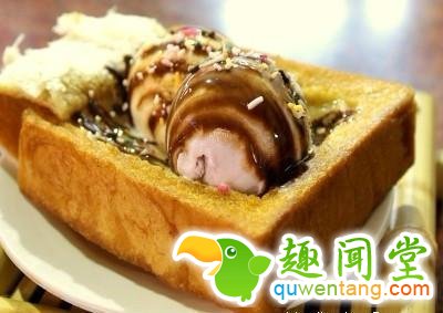 【材料】:厚片吐司1片,冰淇淋1球,蜂蜜1大匙