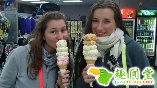 你可能已经吃到嗓子眼了,但无论如何总能再留出一点位置吃这个让你牙齿融化的美式冰激凌,那上面点缀有坚果、棉花糖,还挤上了巧克力浆。