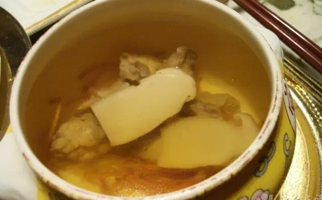 飞龙又名榛鸡,产于兴安岭。飞龙汤是将榛鸡脱毛去掉内脏后,用高汤煮熟即可,汤中不需放任何调料以保持汤原汁原味。飞龙汤肉质鲜美,营养丰富,适合用作滋补汤品。