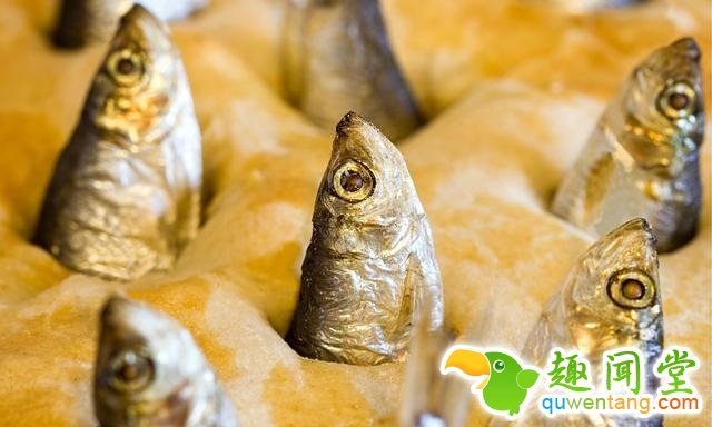 既然说到英国美食,那不得不提仰望星空派了。Stargazy pie ,又被叫做 starrey gazey pie。也是英国的一项传统食物,据说是在一个叫做Tom Bawcock's Eve的节日里吃的。这个食物,通过粗犷的把一些整鱼塞进派里的呈现方式,透出了人们对于探知星空的渴望(大雾