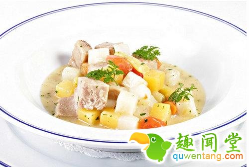 食材:这道菜的白汁蕴含了新鲜的奶油、洋葱、芹菜、胡萝卜、蛋黄、面粉、些许柠檬汁,再加上最画龙点睛的法国白蘑菇,与小牛肉一起煨煮至熟烂,而白汁也同时融入了牛肉汁而变得浓稠。
