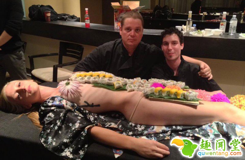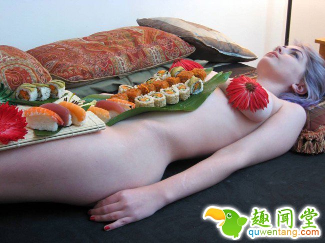 如果你对电影《Sex and the City》里Samantha 为了吸引男友的注意而将寿司摆在赤裸的身体上有印象的话,你现在也有可能在现实生活中看到这项传统日本文化,Naked Sushi在7月的时候就已经开始在温哥华提供这种服务,提供服务的方式为将寿司摆在女模特儿干净、赤裸的身体上供客人夹食取用,此外在多伦多出生的老闆也说过希望这项点子可以带给大家全新的视野感受。