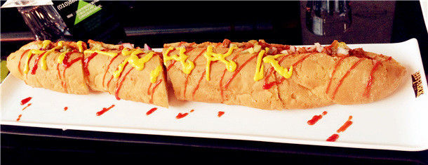 运动餐吧里的京城最长热狗