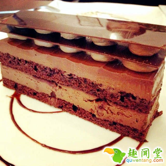 巧克力控早已听说这家的“巧克力最”有多浓郁了吧,上面是两层巧克力片夹巧克力奶油,下面是巧克力泥夹着厚重的巧克力还免蛋糕,整体湿湿软软的感觉再不吃就要融化了一样,每一口都是巧克力的微苦感,甜味更胜一筹,所以特别重口,巧克力就应该吃到牙抖舌腻,不然有什么意思。