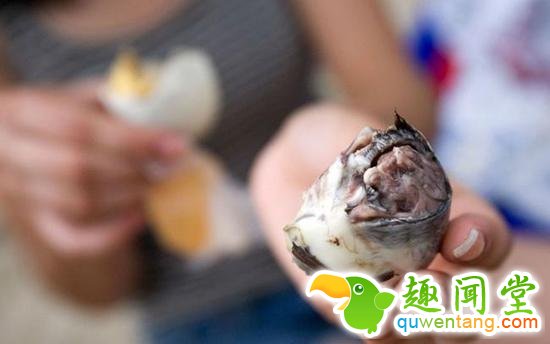 吃腻了煮鸡蛋、炒鸡蛋和炸鸡蛋吗?那么尝尝鸭仔蛋吧,即煮熟的孵化到一半的鸭蛋。