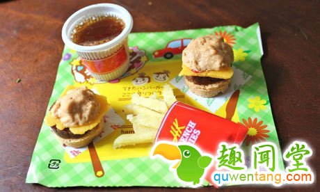 这是一种汉堡外观的小饼干,中间黑色的是巧克力,白巧克力是芝士。请给我来500个。
