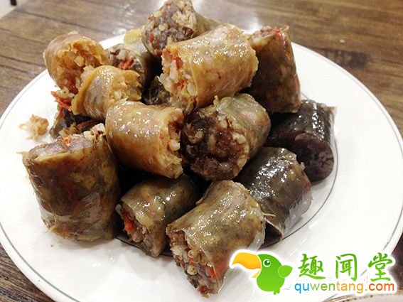 米肠:有很多种类,除了单纯的米,也有菜+粉条等,还有图片上那种鱿鱼的。以及米肠汤饭都是很好吃的~