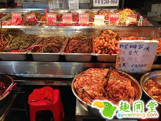 辣和肉是韩国饮食的主要特点,出去吃饭除了一些生菜叶(用来包肉的)基本很少能见到专门的菜食。 在超市买一些食材,自己在家做,这种“过日子”的味道也不失为旅行中的调味剂。