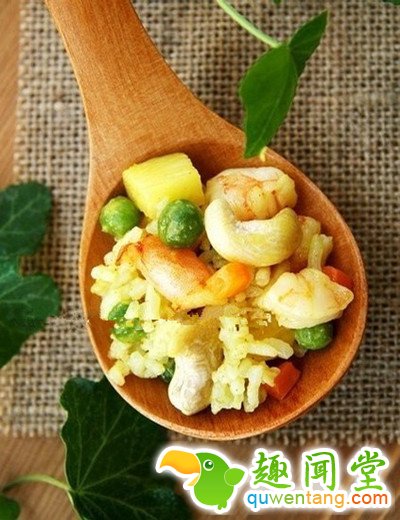 鲜虾/虾仁、鸡胸肉、胡萝卜、菠萝块、腰果、米饭