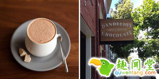 位于旧金山的教堂区的蒲公英巧克力店,提供两种特色热巧克力饮品。欧式的巧克力热饮口感丰富,味道厚重。而教堂热巧克力则有一点微辣,和墨西哥热巧克力相似。点一杯巧克力,然后一边看着热巧克力的现场制作,一边将自己沉浸在店家自制的棉花糖中?;箍梢员渭忧煽肆こУ墓酃庵谩?/p>