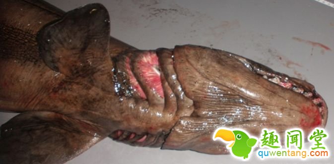 男子将这条怪鱼送到当地的海洋研究进行调查,研究人员发现这是一条非常罕见的鲨鱼,叫皱鳃鲨,是鲨鱼中最原始的一种,有“活化石”之称。