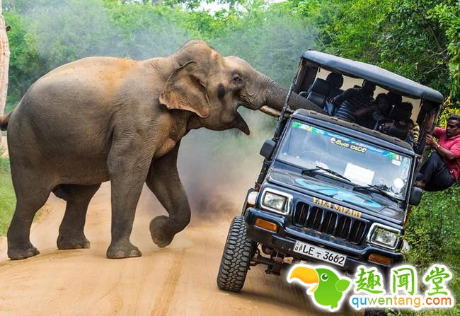 斯里兰卡一大象偷袭游客求食几乎掀翻览车(2)