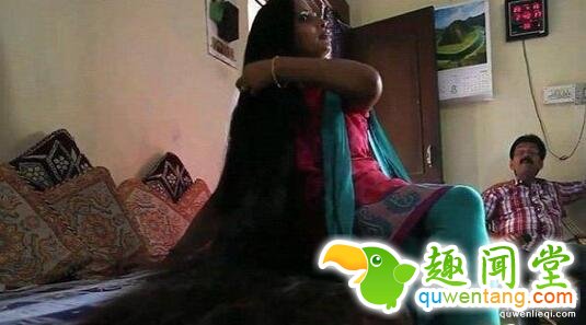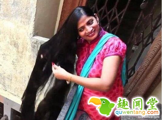 印度这名女子从十岁左右就开始留长头发,三十多年里一直没有剪过,也没染,烫过,其长度达到2米4!