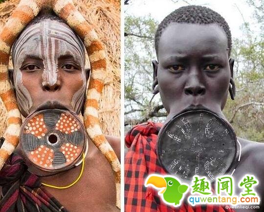 ▼9.衣索比亚Mursi部落:拉伸嘴唇。这个部落的女孩用特别的盘子拉伸嘴唇,盘子越大,女孩的社会地位越高,结婚时男方支付的嫁妆也越多。当地人认为邪灵会通过嘴巴进入人体,盘子能够防止这种现象发生?;褂幸恢炙捣ǎ钡厝苏庋鍪俏吮苊馀员淮叩背膳?。
