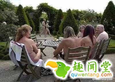但仔细端详之下便会发现那些在闲坐聊天的人们都是一丝不挂、全裸真空上阵!!!