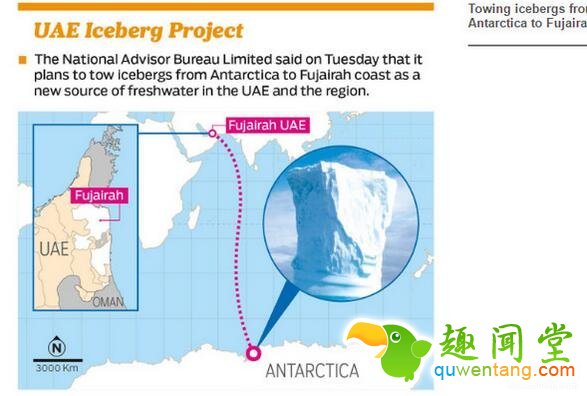 阿联酋愈从南极拖回一整座冰山 够100万人喝5年