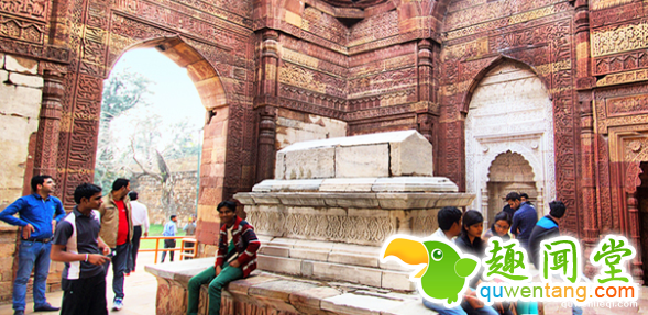 然而印度年青人显然不相信这些封建迷信,他们坐在圣人的石棺上热烈探讨铁柱不生锈的原因。