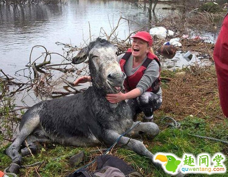 一头驴被从洪水中“捞”起来咧嘴大笑 动物的表情也能这么丰富!