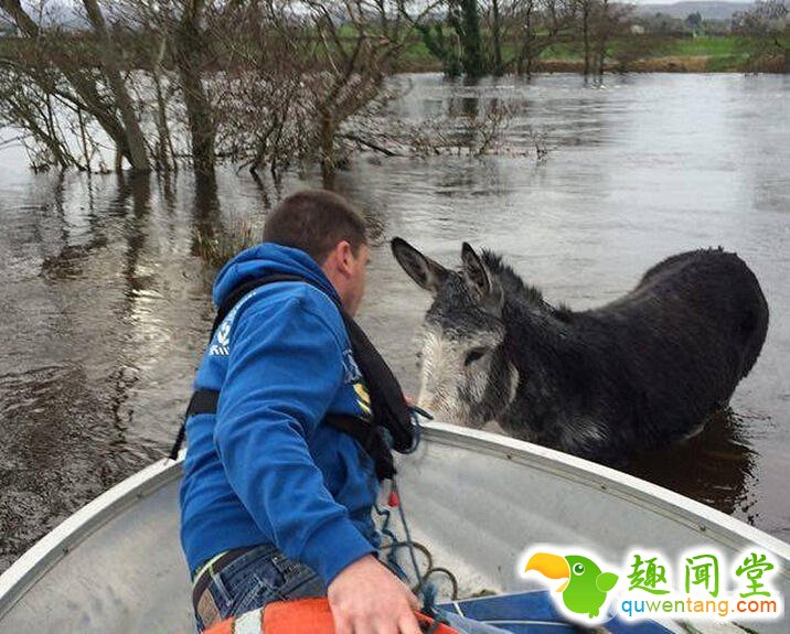 动物的表情能有多丰富?这个问题一直都有非常多的事例来证明:比如这只爱尔兰的驴在被救生队员从洪水中“捞”起来之后,它对着镜头咧嘴大笑,再一次展现了动物和人之间的感情。据每日邮报12月8日报道,由于天降暴雨,爱尔兰凯里郡的一条河流决堤,周围镇上的动物纷纷逃亡高处。