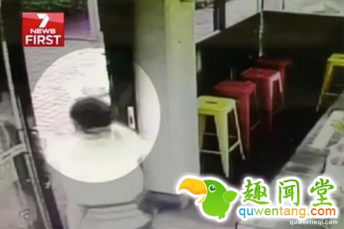 据Yahoo7报导,监控录像记录了年轻人落荒而逃的情景。