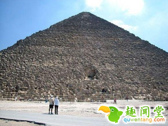 胡夫金字塔由230万巨石搭建而成,有些巨石一块就重达40公吨,整座塔重约600万公吨。这些石头几乎全都是通过水路从阿斯旺和图拉运至吉萨的。金字塔基座面积为13英亩,高481英尺,宽756英尺。因为长年的侵蚀,现在的高度已经降到了455英尺。