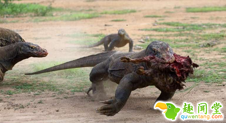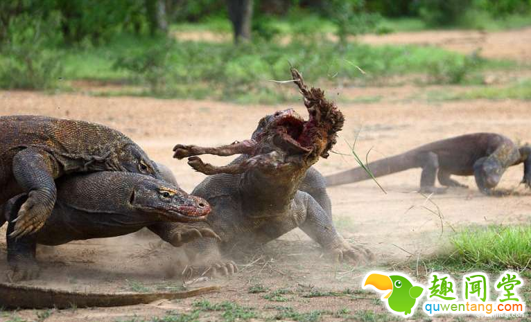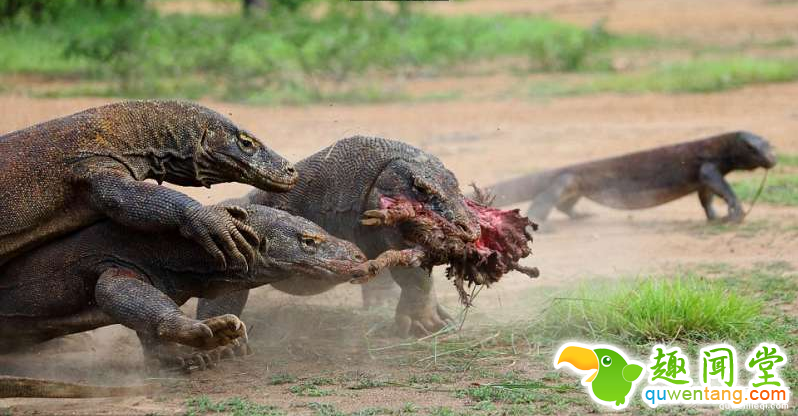 安德烈的镜头意外捕捉到几只科摩多巨蜥抢食的珍贵画面?;嬷幸恢痪掾岬鹱乓豢椴腥辈蝗囊奥故澹酝寂艿搅硗庖淮ζЬ驳牡胤蕉雷韵碛?,但牠的意图很快就被其他巨蜥发现,牠们立刻奔上前来,紧跟在后。