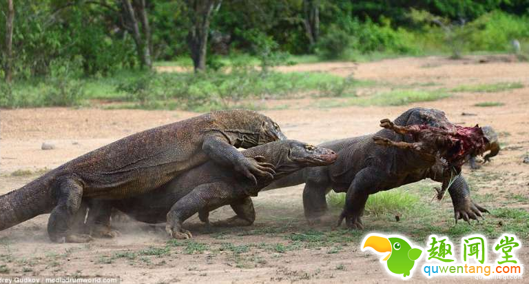科摩多巨蜥(Komodo Dragon)是目前世界上最大的蜥蜴,成年的巨蜥体长可达2-3公尺,体重平均约70公斤,而目前已知最大的巨蜥体重甚至重达166公斤!牠们分布于印尼东部的小巽他群岛,以残暴的性格着称,吸引许多观光客特地从世界各地远道而来观赏。而日前就有一位来自俄罗斯的摄影家安德烈(Andrey Gudkov)在林卡岛(Rinca)旅游时意外拍到一只科摩多巨蜥为了抢食而将自己的头整个埋进同伴嘴巴里的照片,让人对巨蜥的贪吃程度叹为观止,一起来欣赏这些珍贵的照片吧!