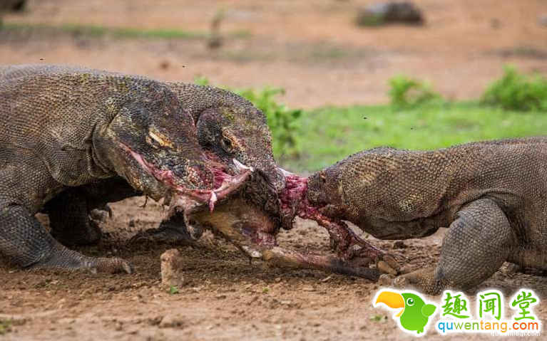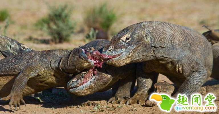 贪吃的巨蜥看到同伴叼着鹿肉便扑上去抢食,吃完后竟然一口吞了同伴的头!