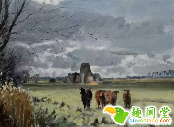 如果仅是出于对小画家的猎奇心态,Kieron的画作无法引起如此轰动。他的画作“总是含有一种超常成熟的忧伤”。他的大多数的画作描绘的是诺??丝さ男≌蚍绻?,这里有成片的草原绿树与明媚的天空,“我喜欢这儿,没有高山或丘陵,只有一望无际的天。"