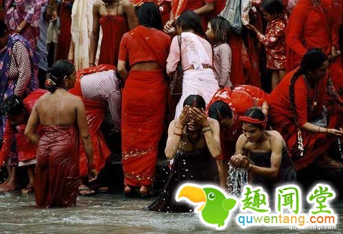 尼泊尔有一个奇特的洗浴文化——户外洗浴。在这里无论男女老少,男人还是女人都会在街边大露天一起洗澡。但是男人早已对这种情况视而不见,见怪不怪了。