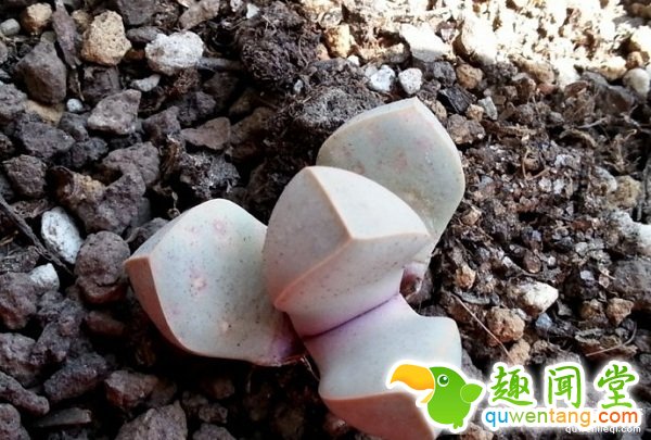 我真的没有骗人!这长的灰灰土土、一身几何造型,像芋头又像石头的东西,真的是植物啦!而且是亲们最喜欢的多肉植栽喔!这家伙叫做「魔玉」,原产于纳米比亚,虽然一样是多肉植物、看起来短短小小肉很厚,但其实非常难养,一般的亲们是绝对养不起来的。